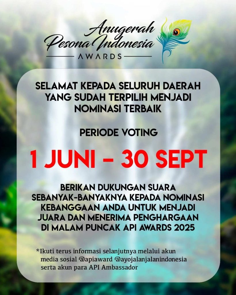 Ajang ini tidak hanya menjadi panggung untuk memperkenalkan keunikan daerah, tetapi juga momentum penting bagi pemerintah daerah, pelaku wisata, dan masyarakat untuk bersinergi dalam memperkuat identitas pariwisata lokal. Tahun ini, Kabupaten Bengkayang, Kalimantan Barat didaulat menjadi tuan rumah malam puncak API Awards 2025 yang akan berlangsung pada November 2025.