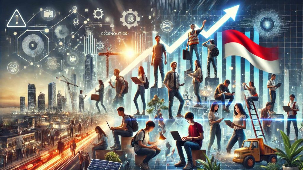 Untuk menyerap tenaga kerja usia produktif, Indonesia harus menciptakan lapangan kerja formal di sektor-sektor strategis. Pemerintah dapat memberikan insentif pajak untuk menarik investasi di industri padat karya terampil, seperti teknologi, manufaktur canggih, atau energi hijau. Misalnya, pengembangan industri baterai kendaraan listrik di Sulawesi dapat menyerap ribuan lulusan perguruan tinggi dan vokasi. Regulasi tenaga kerja juga perlu disederhanakan tanpa mengorbankan hak pekerja, untuk mendorong perusahaan membuka lowongan baru. Selain itu, ekonomi digital harus menjadi prioritas: pertumbuhan startup dan e-commerce dapat menciptakan peluang kerja bagi generasi muda, tetapi membutuhkan dukungan infrastruktur, seperti internet cepat di daerah terpencil. Dengan memperluas lapangan kerja formal, Indonesia dapat memastikan tenaga kerja usia produktif berkontribusi pada pertumbuhan ekonomi, bukan terjebak di sektor informal yang rendah produktivitas. - Dukungan Nyata untuk Ekosistem Wirausaha