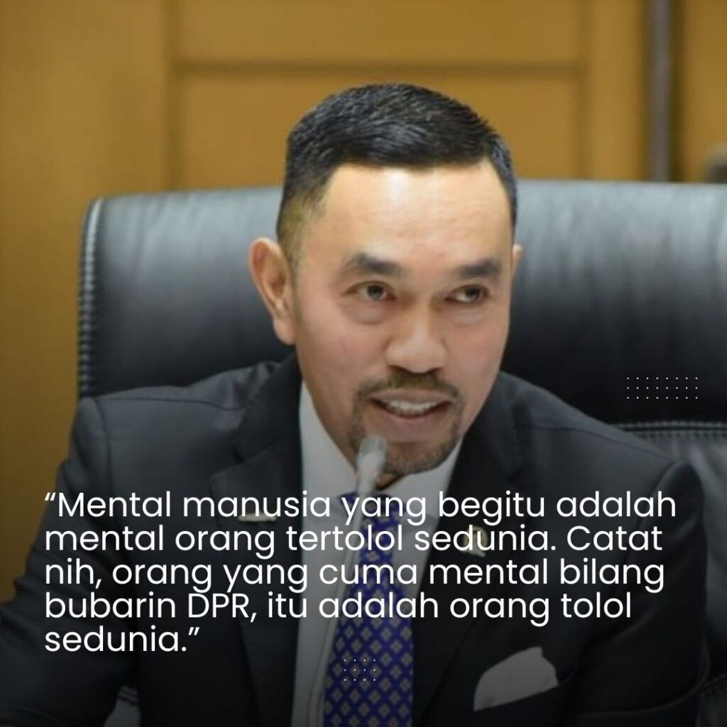 Ia menyebut perbandingan antara gaji DPR dan masyarakat biasa sebagai “sesat logika,” dan menolak disamakan dengan rakyat jelata. Pelabelan itu dianggap merendahkan rakyat kecil, dan langsung disindir dengan tajam—termasuk lewat satire dari aktivis Melanie Subono.