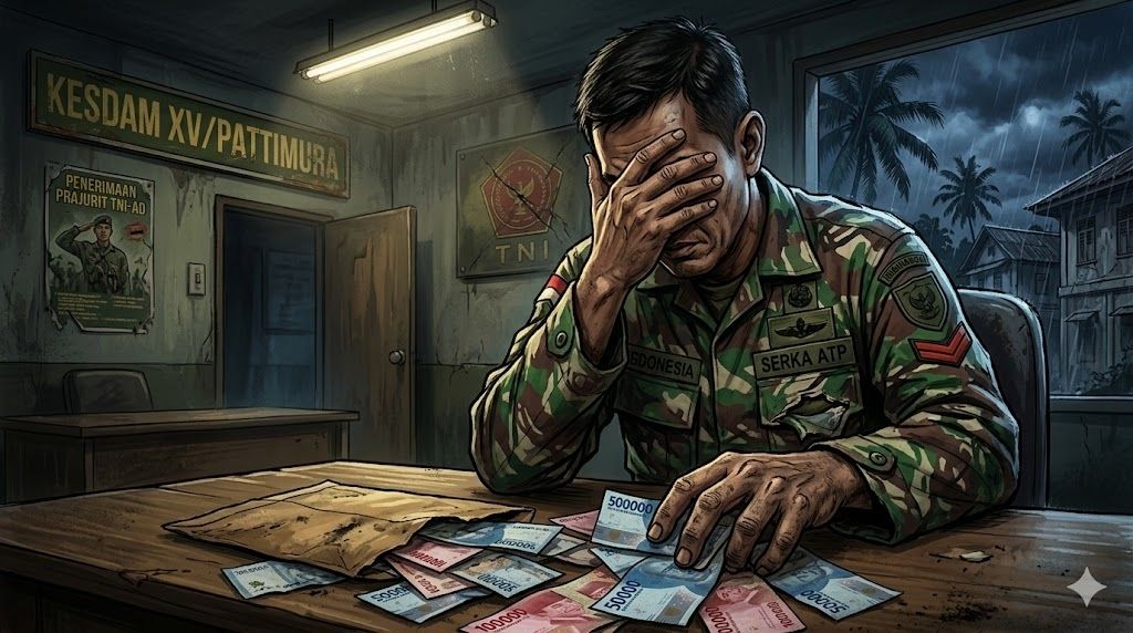 Kasus dugaan penipuan rekrutmen yang menjerat Serka ATP dari Kesdam XV/Pattimura bukan sekadar berita kriminal biasa. Ini adalah tamparan keras bagi wajah institusi yang selama ini mendengungkan slogan “penerimaan tanpa dipungut biaya”. Ketika seorang prajurit aktif berani bermain api dengan uang puluhan juta rupiah sebagai jaminan kelulusan, kita tidak lagi bicara soal kekhilafan individu, melainkan soal keberanian oknum yang merasa bisa mengakali sistem di bawah hidung komandannya sendiri.
