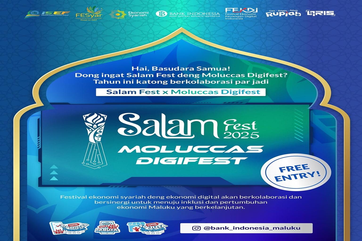 Kota Ambon menjadi saksi gelaran acara bertajuk Salam Fest x Moluccas Digifest 2025, yang diselenggarakan oleh Bank Indonesia (BI) melalui Kantor Perwakilan Provinsi Maluku. Acara ini resmi dibuka pada 24 April 2025 oleh Gubernur Maluku, Hendrik Lewerissa, di Pattimura Park, yang akan berlangsung selama tiga hari. Mengusung semangat gerakan nasional Bangga Buatan Indonesia, festival ini bertujuan mempercepat transformasi keuangan digital dan memajukan ekonomi syariah di kawasan timur Indonesia.