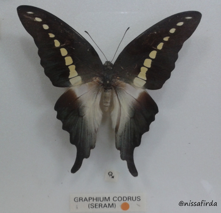 - Graphium codrus – dikenal dengan corak hijau kebiruan di sayapnya, endemik Seram