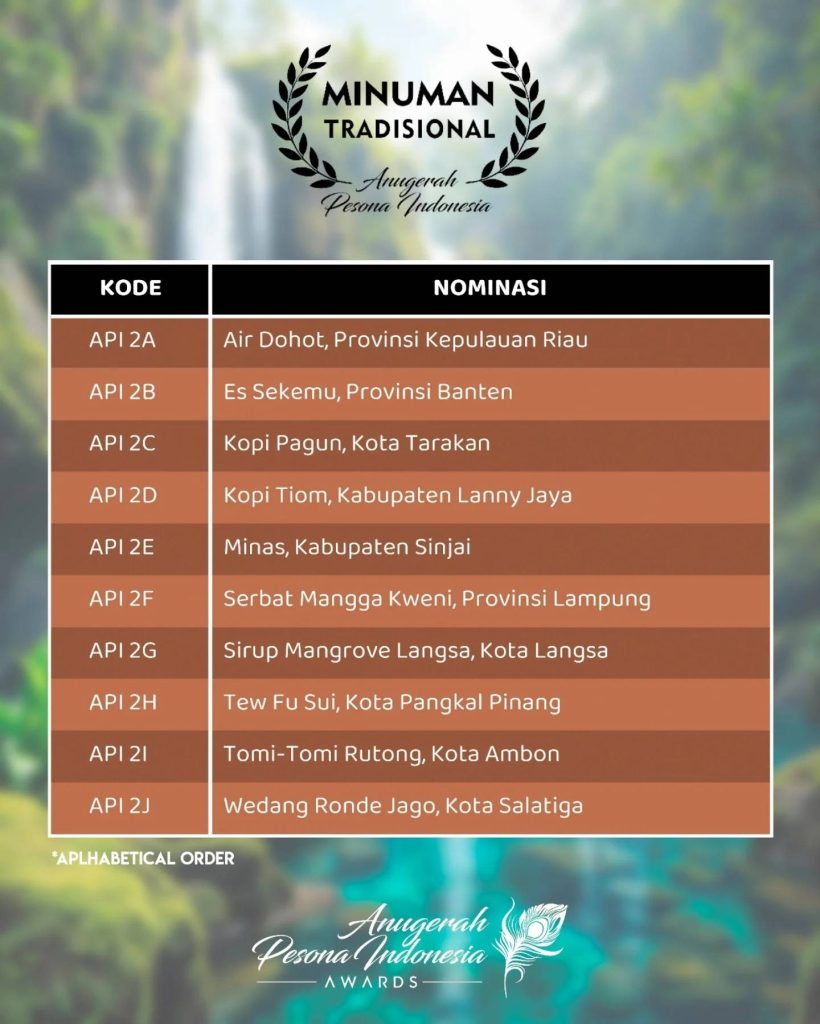 Periode voting untuk API Awards 2025 akan berlangsung dari 1 Juni hingga 30 September 2025. Dukung Tomi-Tomi Rutong sebagai ikon minuman tradisional dari Ambon dengan cara mengikuti informasi terbaru di akun resmi: